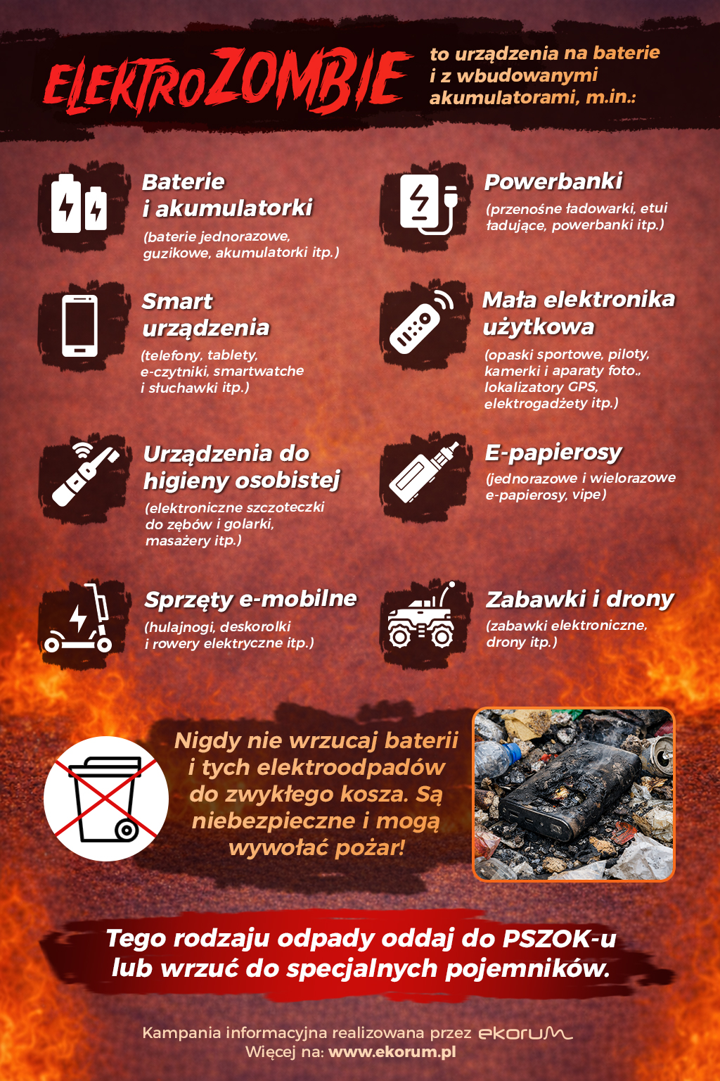 Na co dzień rzadko o tym myślimy. Zużyta bateria, stary powerbank, jednorazowy e-papieros, zepsuta zabawka elektroniczna na baterie. Niewielkie przedmioty, które często lądują w koszu „przy okazji”. Tymczasem właśnie one coraz częściej stają się przyczyną pożarów śmieciarek czy sortowni, do których trafiają. Bateria w koszu to realne zagrożenie! Dlaczego edukacja o elektroodpadach to także kwestia bezpieczeństwa? Niestety, obserwujemy wyraźny wzrost takich zdarzeń. Doniesienia o pożarach wywołanych bateriami i akumulatorami pojawiają się dziś regularnie. I nie są to już pojedyncze przypadki, ale powtarzalny problem systemowy. Małe odpady, wielkie konsekwencje Nowoczesne baterie, szczególnie litowo-jonowe, są wydajne i powszechne, ale też bardzo wrażliwe na uszkodzenia. W warunkach panujących w śmieciarce czy sortowni – zgniatania, nacisku, tarcia – może dojść do zwarcia, przegrzania i samozapłonu. Wystarczy jedna bateria, by zapaliły się odpady wewnątrz pojazdu lub hali. A tego rodzaju elektroodpadów jest mnóstwo. Znajdują się dziś w wielu przedmiotach, których nie zawsze kojarzymy z elektroodpadami. To nie tylko telefony czy powerbanki. To także: Wiele z tych przedmiotów trafia do kosza, bo są małe, tanie lub „nie wyglądają groźnie”. A właśnie one bardzo często okazują się iskrą zapalną. To nie tylko ogień Gdy zapala się bateria/akumulator, problemem nie jest wyłącznie ogień. Dochodzi do emisji toksycznych gazów i substancji, które zagrażają zdrowiu ludzi i środowisku. Pożary w zakładach przetwarzania odpadów to także ogromne straty finansowe, przestoje w odbiorze śmieci i zagrożenie dla pracowników oraz strażaków. Czy można tu mówić o ze złej woli mieszkańców? Absolutnie nie! W gros przypadkach u źródeł tych zdarzeń leży brak wiedzy. Wielu ludzi nie zdaje sobie sprawy, że bateria ukryta w zabawce czy kartce okolicznościowej jest odpadem niebezpiecznym i nie powinna trafić do domowego pojemnika. Mało tego: nie wiedzą, że za wrzucenie tego rodzaju odpadów do zwykłego kosza grozi kara – nawet 500 zł. Edukacja jako element bezpieczeństwa Dlatego mówimy wprost: edukacja w zakresie elektroodpadów to dziś kwestia bezpieczeństwa publicznego. I właśnie tu ogromną rolę mają do odegrania samorządy. To od lokalnych działań informacyjnych, kampanii edukacyjnych, materiałów dla mieszkańców i dzieci zależy, czy wiedza dotrze tam, gdzie powinna – do domów, szkół i miejsc pracy. Zakazy, kary finansowe i regulaminy nie wystarczą, jeśli mieszkańcy nie rozumieją, dlaczego dane odpady są niebezpieczne. Dobrze poprowadzona ekoedukacja w zakresie baterii i akumulatorów z pewnością przełoży się na wzrost ilości elektroodpadów oddawanych do punktów zbiórki (PSZOK-i, kontenery i pojemniki na drobne elektrośmieci czy konkretnie: na zużyte baterie i akumulatorki) oraz mniejszą liczbę groźnych incydentów związanych z samozapłonami czy wyciekiem toksycznych substancji. Recykling – ważny, ale możliwy tylko wtedy, gdy odpady są dobrze zebrane Oczywiście, prawidłowe postępowanie z bateriami ma także pozytywny wymiar. Oddane do właściwych punktów trafiają do recyklingu, gdzie odzyskuje się cenne surowce, takie jak lit, kobalt czy nikiel. Segregacja to nie formalność i nie „eko-moda”. To element codziennej odpowiedzialności za wspólne bezpieczeństwo. Dlatego: Bo w świecie pełnym elektroniki nawet najmniejszy odpad może mieć bardzo duże konsekwencje.