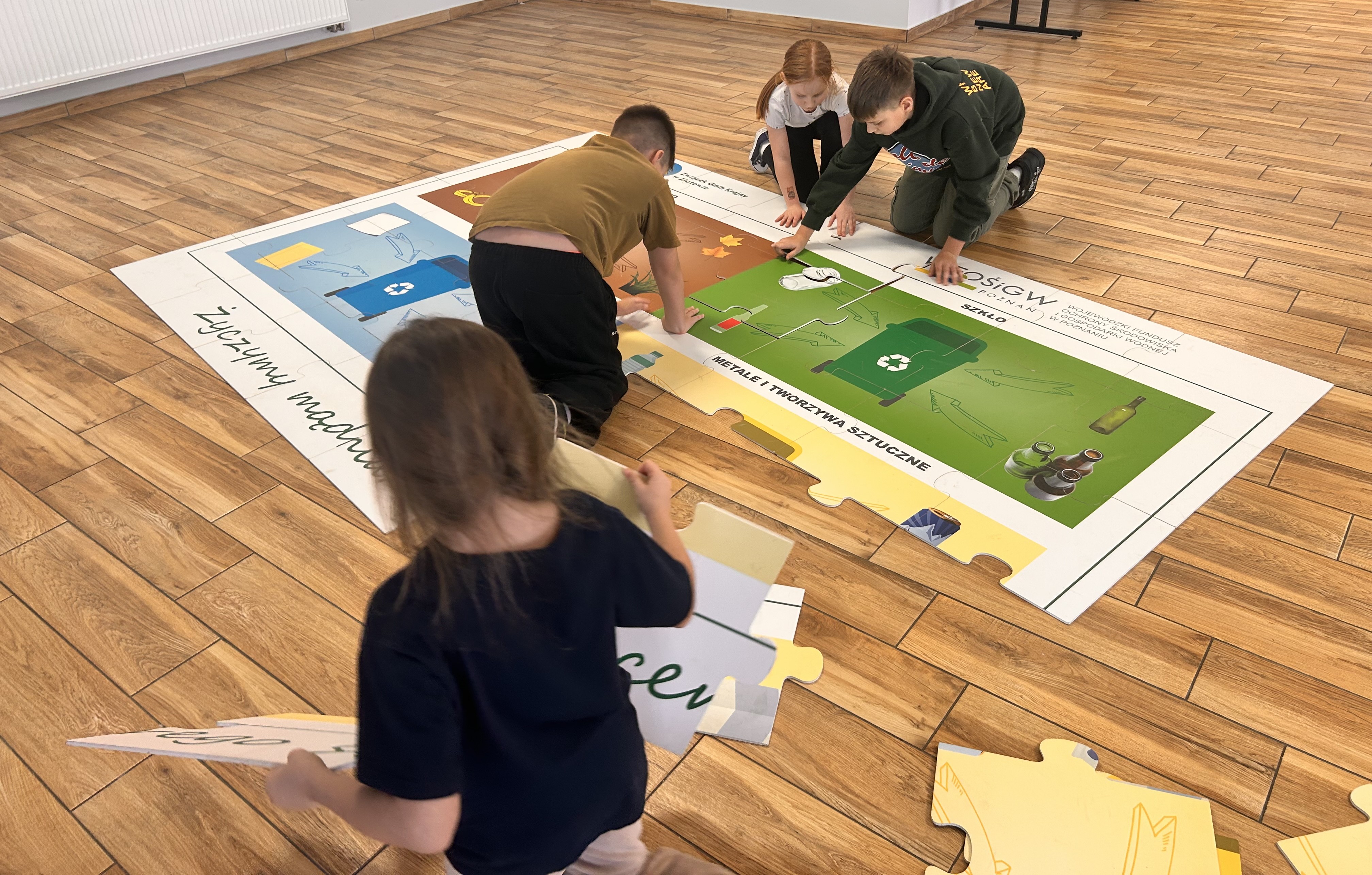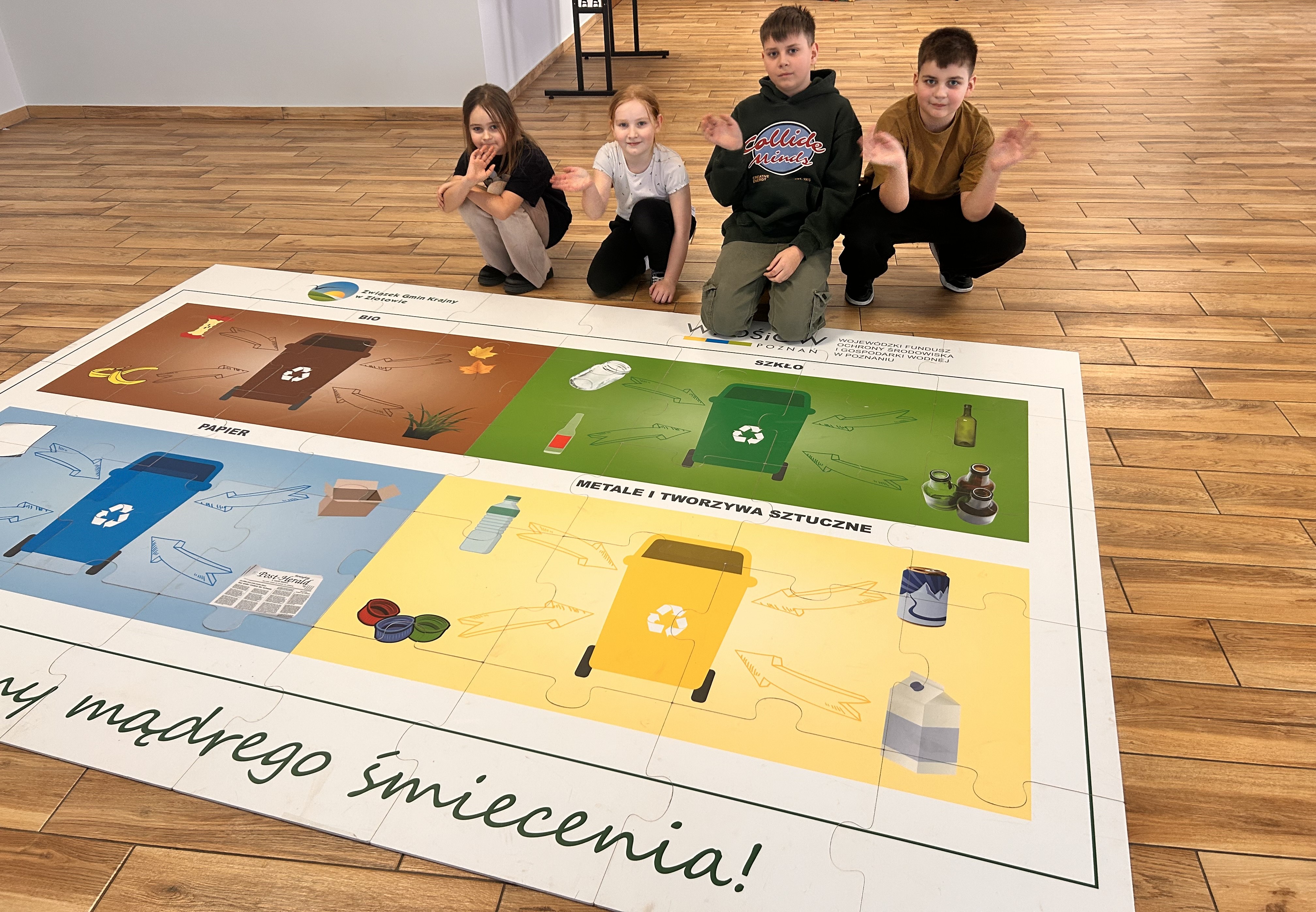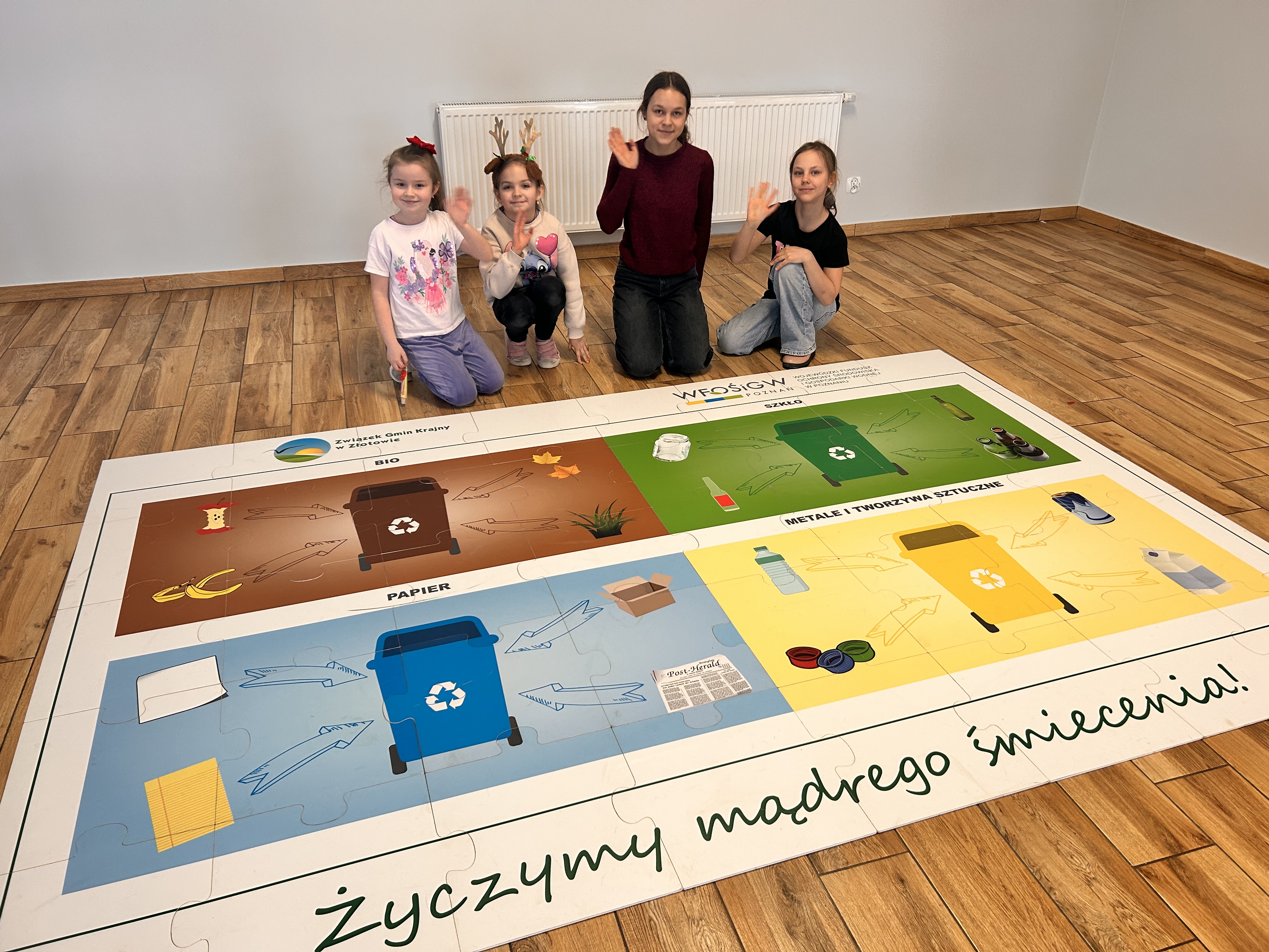W dniu 17 lutego 2026 r. w Śmiardowie Złotowskim przeprowadziliśmy warsztaty ekologiczne dotyczące prawidłowej segregacji odpadów, recyklingu oraz codziennej troski o środowisko. Zajęcia zostały zorganizowane z inicjatywy Pani Sołtys w ramach zimowych ferii. Na początku odbyło się krótkie wprowadzenie do tematu – zamiast klasycznego wykładu była to swobodna pogadanka o zasadach prawidłowej segregacji oraz o tym, co dzieje się z odpadami w procesie recyklingu. Dzieci dowiedziały się, dlaczego tak ważne jest właściwe segregowanie odpadów już w domu i jak duże ma to znaczenie dla środowiska. Tuż po części wprowadzającej każde dziecko losowało odpad i samodzielnie decydowało, do którego pojemnika powinno go wrzucić. Zadanie zostało wykonane wzorowo – uczestnicy świetnie poradzili sobie z praktycznym sprawdzianem wiedzy. W dalszej części spotkania przyszedł czas na utrwalenie wiedzy w formie zdrowej, drużynowej rywalizacji. Najpierw odbył się emocjonujący quiz, w którym dwie drużyny rywalizowały przy użyciu dzwonków – liczył się refleks, ale przede wszystkim poprawna odpowiedź. Następnie uczestnicy zmierzyli się z kolejnym zadaniem i wspólnie układali puzzle związane z tematyką segregacji odpadów, utrwalając w ten sposób zdobytą wcześniej wiedzę. Uczestnicy spisali się znakomicie – byli bystrzy, zaangażowani i chętni do współpracy. Nawet jeśli początkowo nie znali odpowiedzi, wspierali się nawzajem, a przy ponownej weryfikacji bezbłędnie wskazywali prawidłowe rozwiązania. Dziękujemy za zaproszenie i wspólnie spędzony czas!