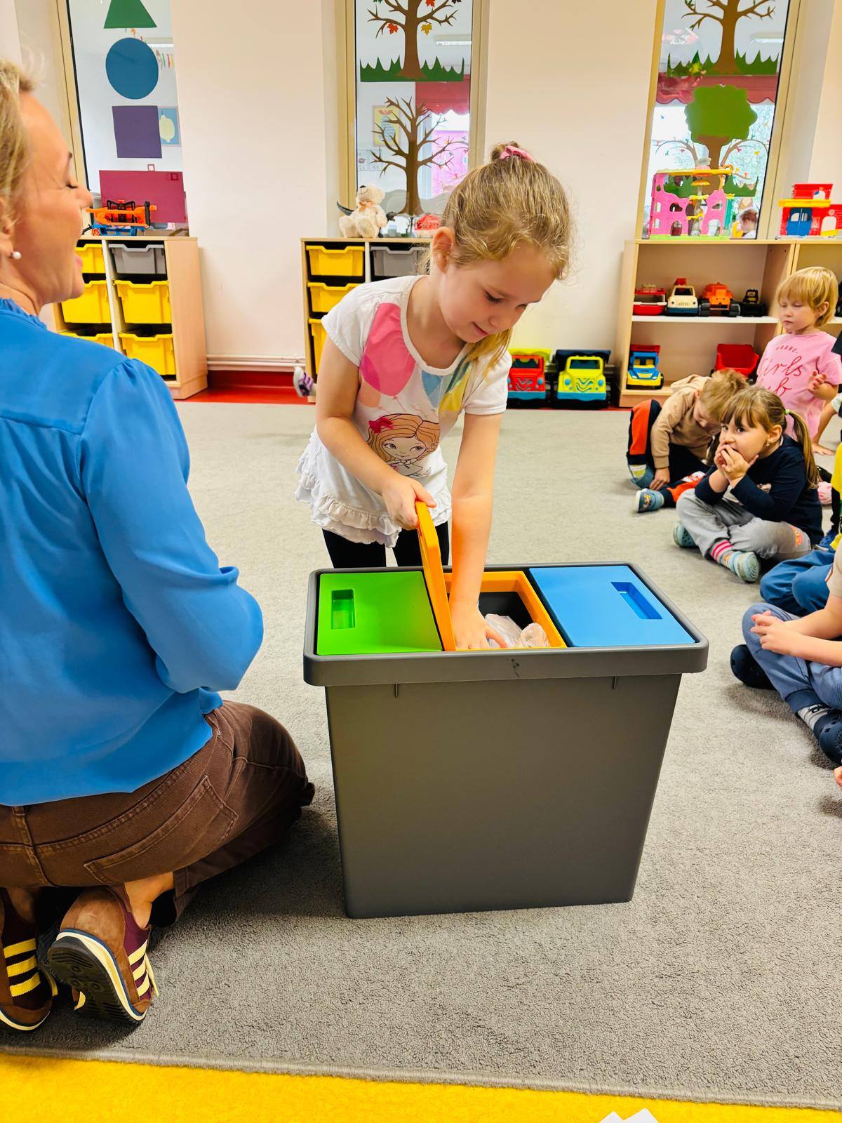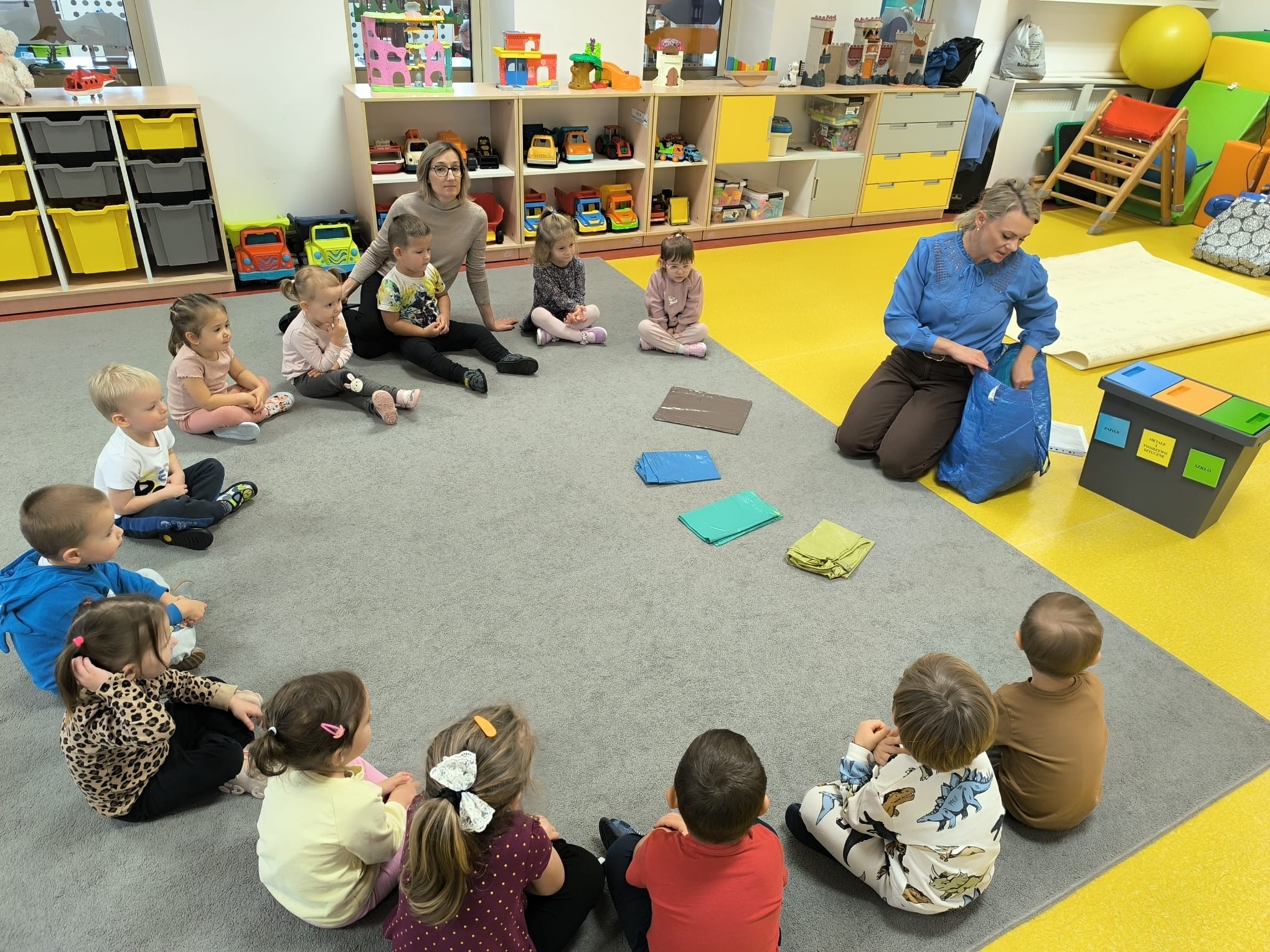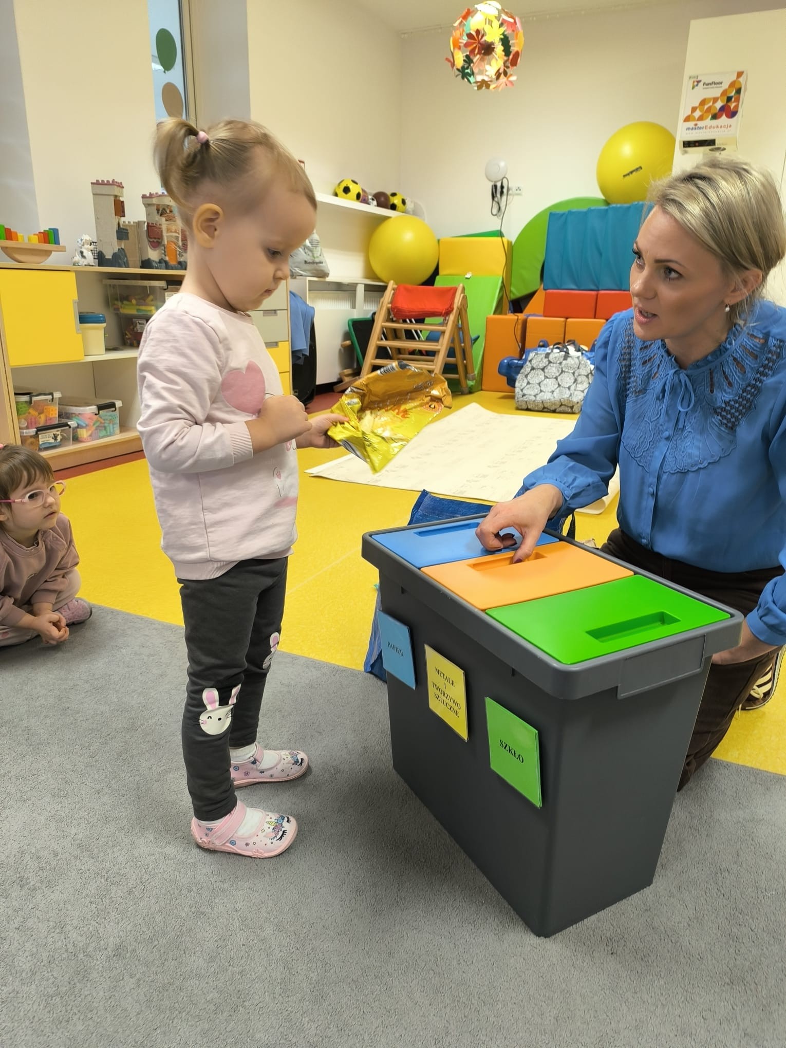 Zajęcia o segregacji odpadów w "Niepublicznym Przedszkolu i Żłobku "Pszczółka Maja" w Okonku (ul. Leśna 40)