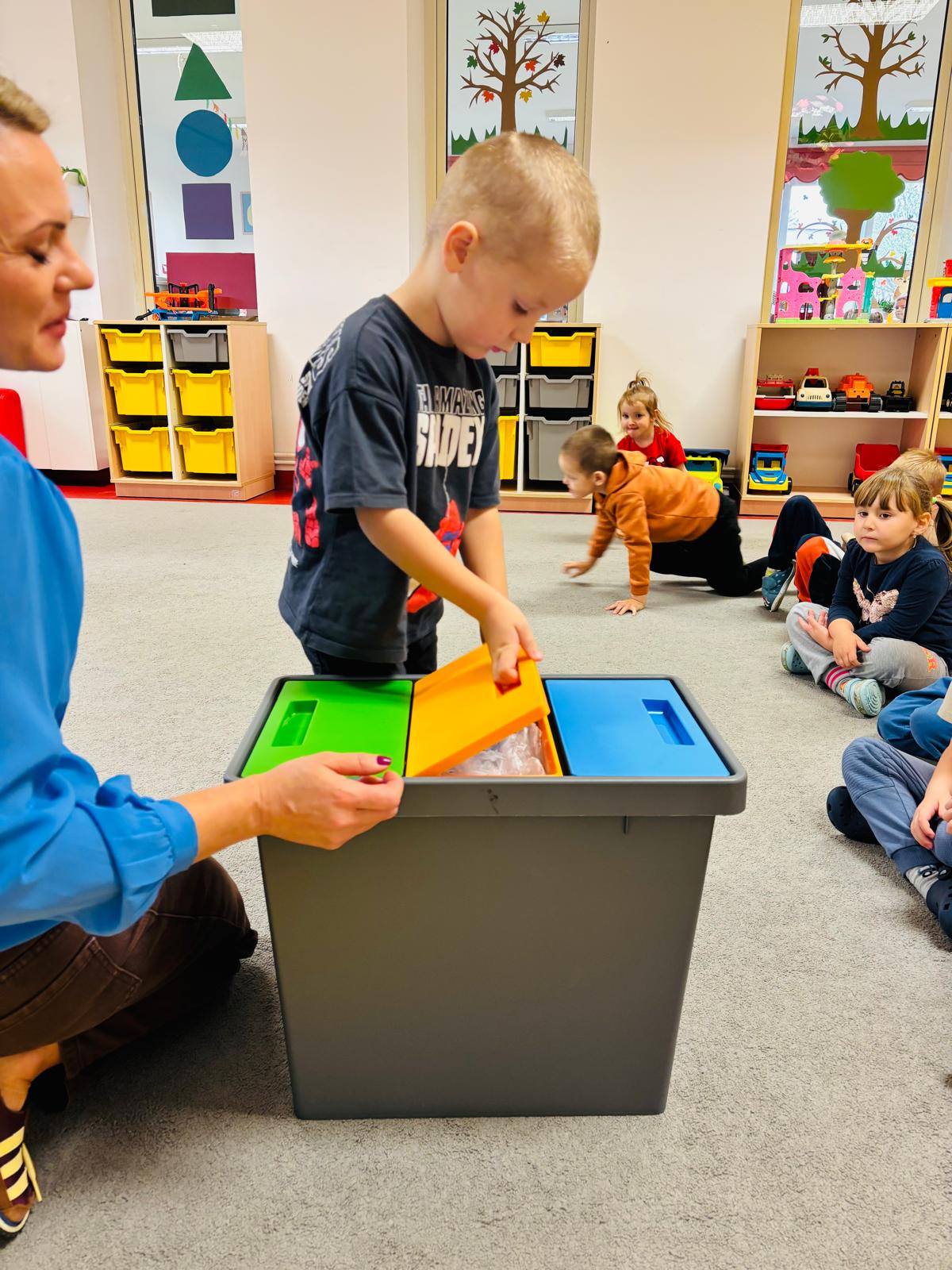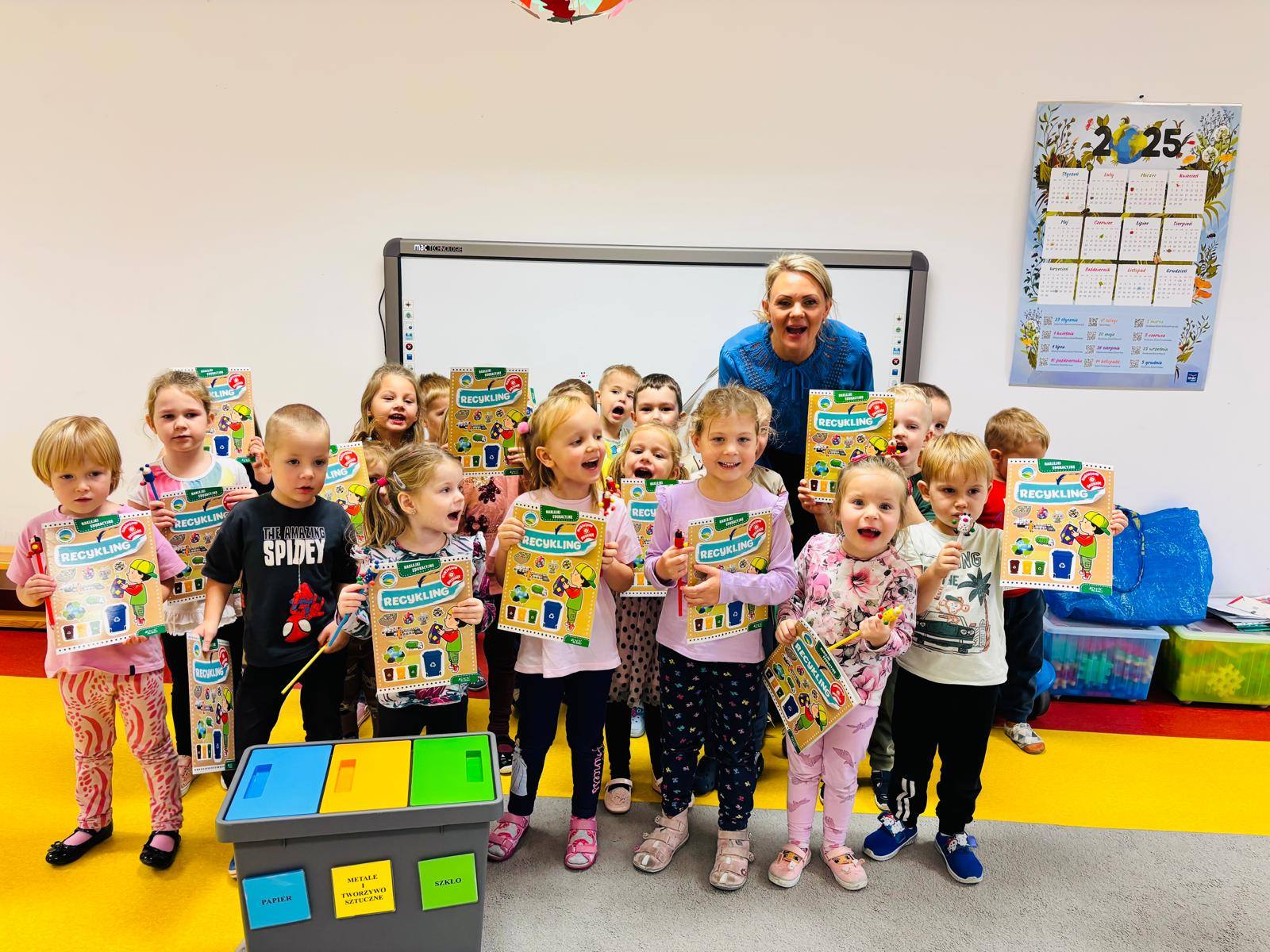 4 listopada 2025 roku odwiedziliśmy Niepubliczne Przedszkole i Żłobek „Pszczółka Maja” w Okonku (ul. Leśna 40). Wspólnie z najmłodszymi odkrywaliśmy tajniki segregacji odpadów, rozmawialiśmy o recyklingu i o tym, jak każdy z nas może codziennie dbać o czystą planetę. Dzieci z entuzjazmem uczestniczyły w zajęciach, dzieląc się swoimi pomysłami i ogromną dawką uśmiechu. Na pamiątkę każdy mały uczestnik otrzymał kolorowankę edukacyjną, która połączy zabawę z nauką o ekologii. Serdecznie dziękujemy za ciepłe przyjęcie i zapraszamy do obejrzenia fotorelacji na fanpage’u: